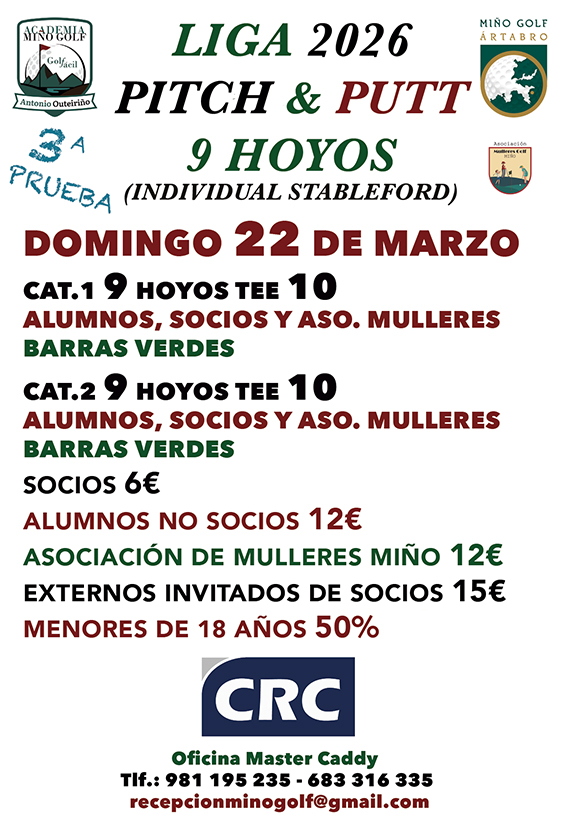 Pitch&Putt, Torneo3ª Prueba LIGA PITCH & PUTT 2026REGLAMENTO RANKING RESULTADOS HCP santirt@gmail.commarzo 22, 2026