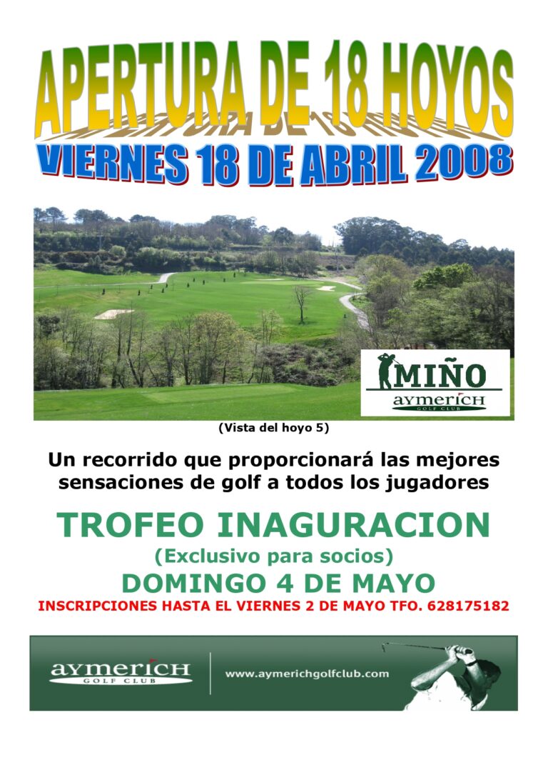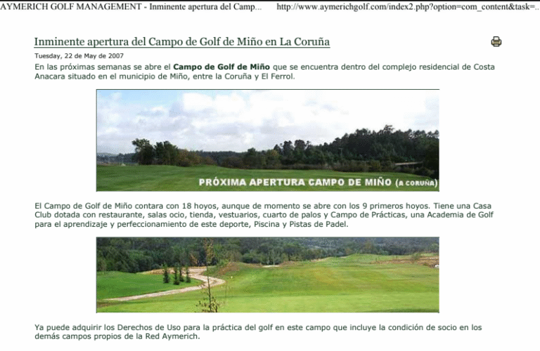 NoticiasWebAymerich: Inminente apertura del Campo de Golf de Miño en La CoruñaNOTICIA Porsantirt@gmail.comOnjunio 5, 2007