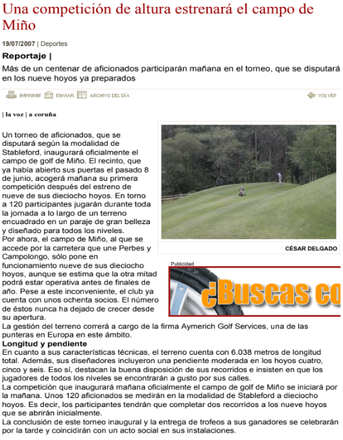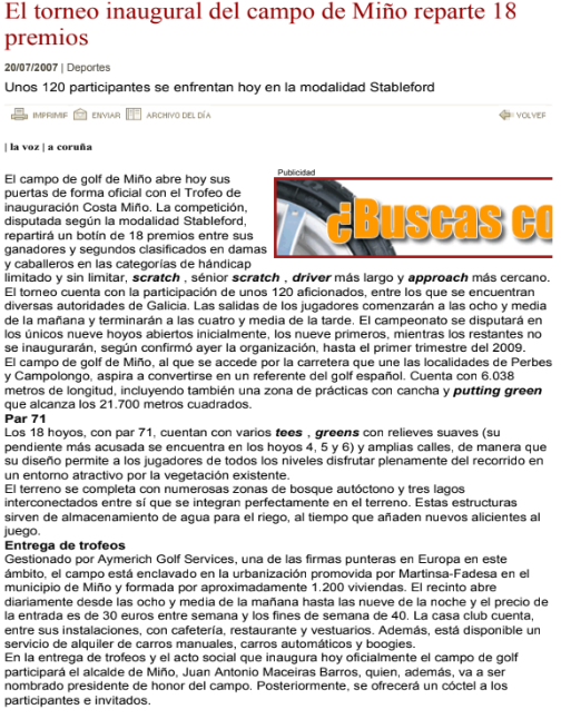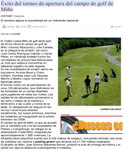 NoticiasLa Voz: El torneo inaugural del campo de Miño reparte 18 premiosNOTICIA Porsantirt@gmail.comOnjulio 20, 2007
