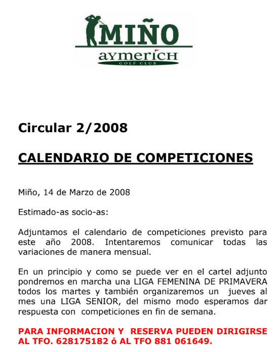 NoticiasAYMERICH CICULAR 2-2008. Calendario de CompeticionesNOTICIA Porsantirt@gmail.comOnmarzo 14, 2008