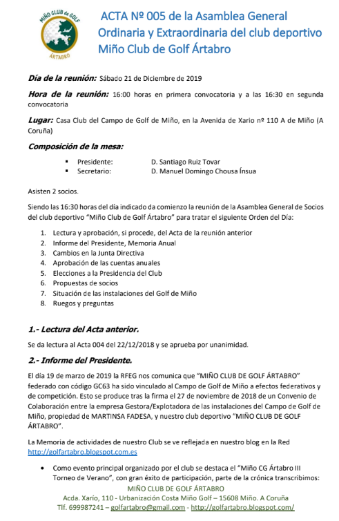 NoticiasMiño Club de Golf Ártabro Acta Nº 005 AsambleA GeneralACTA PDF santirt@gmail.comdiciembre 21, 2019