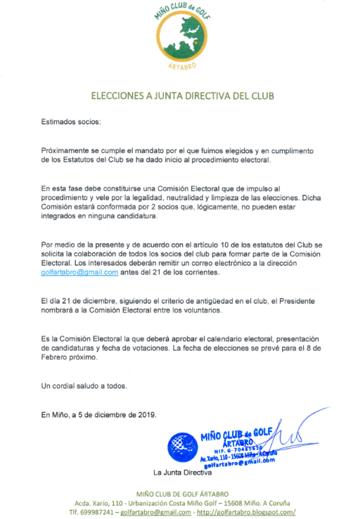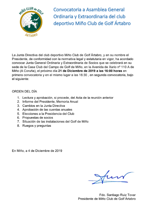 NoticiasConvocatoria Asamblea MIÑO CLUB DE GOLF ÁRTABROCONVOCATORIA PDF santirt@gmail.comdiciembre 4, 2019