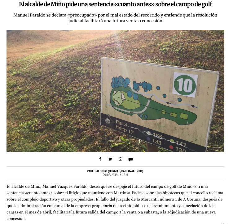 NoticiasLa Voz de Galicia: El alcalde de Miño pide una sentencia «cuanto antes» sobre el campo de golfNOTICIA santirt@gmail.comagosto 9, 2019