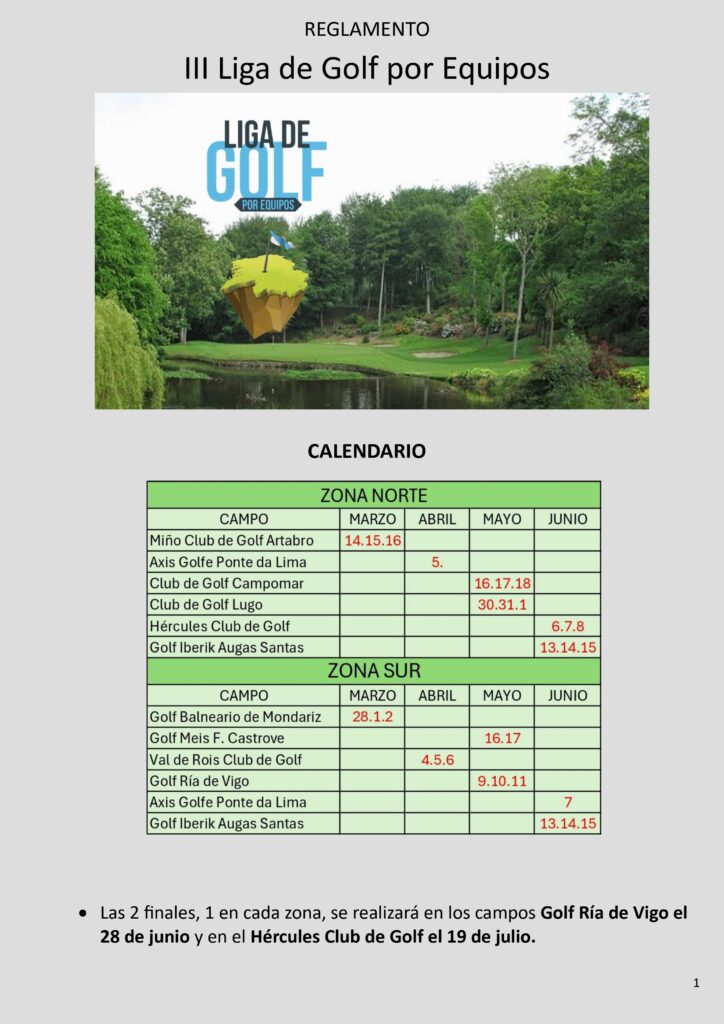 La próxima prueba de la Zona Norte se realizará en el campo de Ponte de Lima el próximo 5 de abril y en la Zona Sur se realizará el 4, 5 y 6 de abril en el campo de Club de Golf Val de Rois.